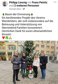 Den größten Dank möchten wir jedoch den betroffenen Familien aussprechen, die mit ihren Anhängern ein sichtbares Zeichen in der Gesellschaft für unsere zu früh verstorbenen Kinder gesetzt haben. Jeder gestaltete Stern, jeder Engel oder jedes Herz erzählte eine Geschichte, jede Träne war ein Ausdruck von Liebe und Schmerz. Ihr habt den Baum der Erinnerung zu etwas gemacht, das uns wirklich die Worte dafür fehlen.